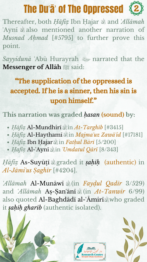 The Supplication of the Oppressed Is Answered